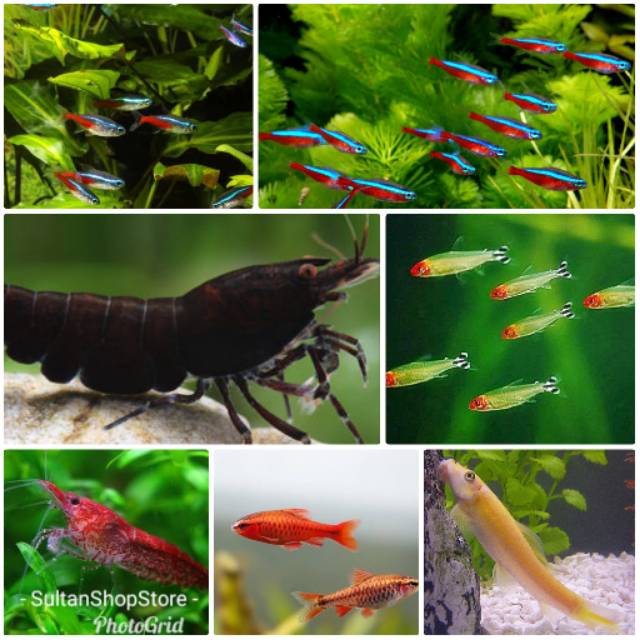 Paket ikan hias aquascape pink zebra, guppy, neon , koral: