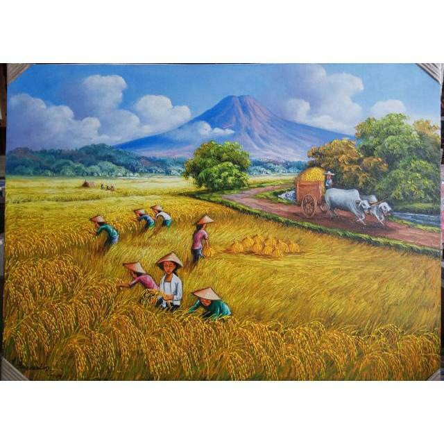 Baru 30 contoh lukisan pemandangan persawahan lukisan panen padi pemandangan sawah ukuran 135 x 85 cm download gambar pem di 2020 pemandangan lukisan kota bandung.